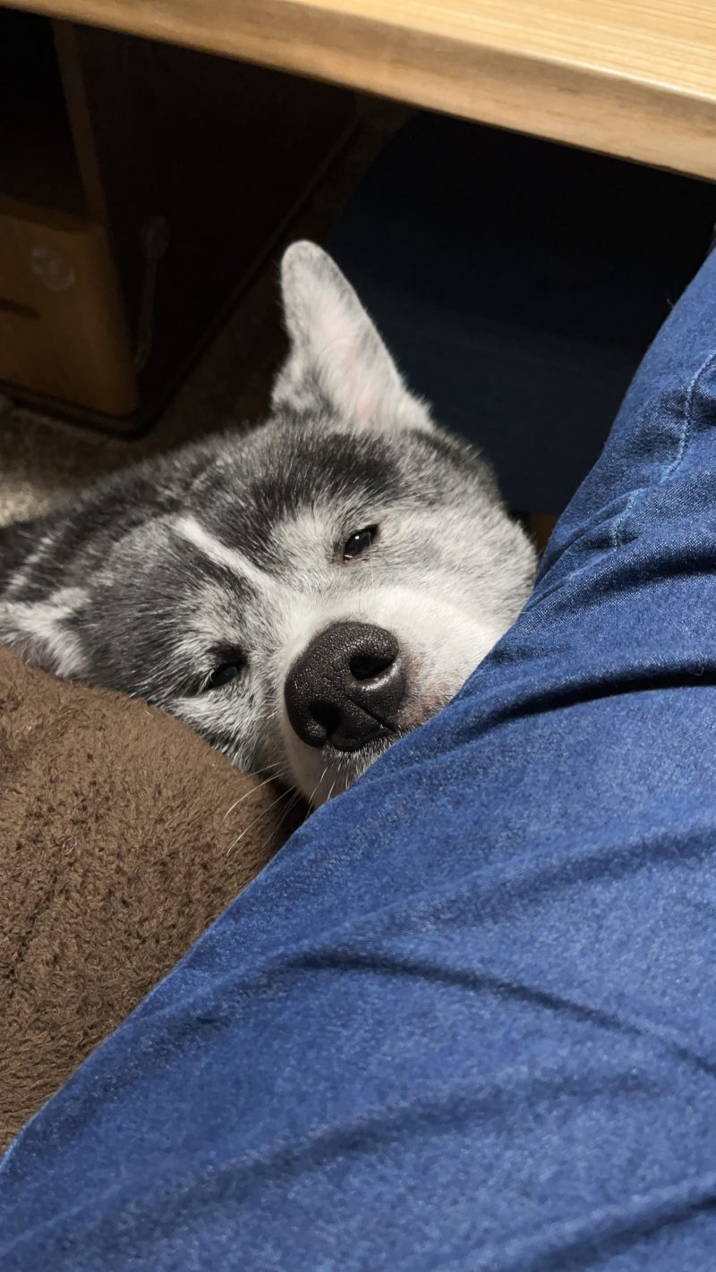 朝から、私の足にピッタリくっついて